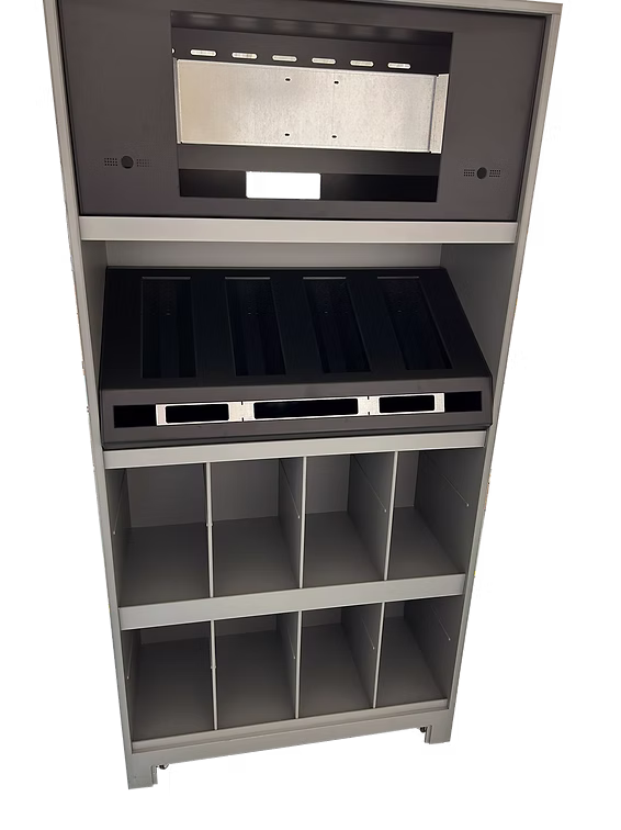 We were presented with a strict set of requirements, placing a strong emphasis on system health and safety. These requirements included multiple tip tests, weight constraints, and ensuring the display seamlessly integrated with other furniture pieces within the shop.